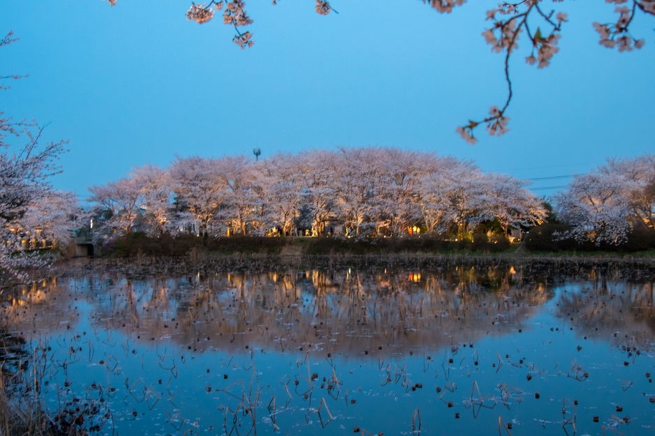 ✅ 연못과 벚꽃의 조화 – 수면 위에 비친 벚꽃의 반영이 환상적!