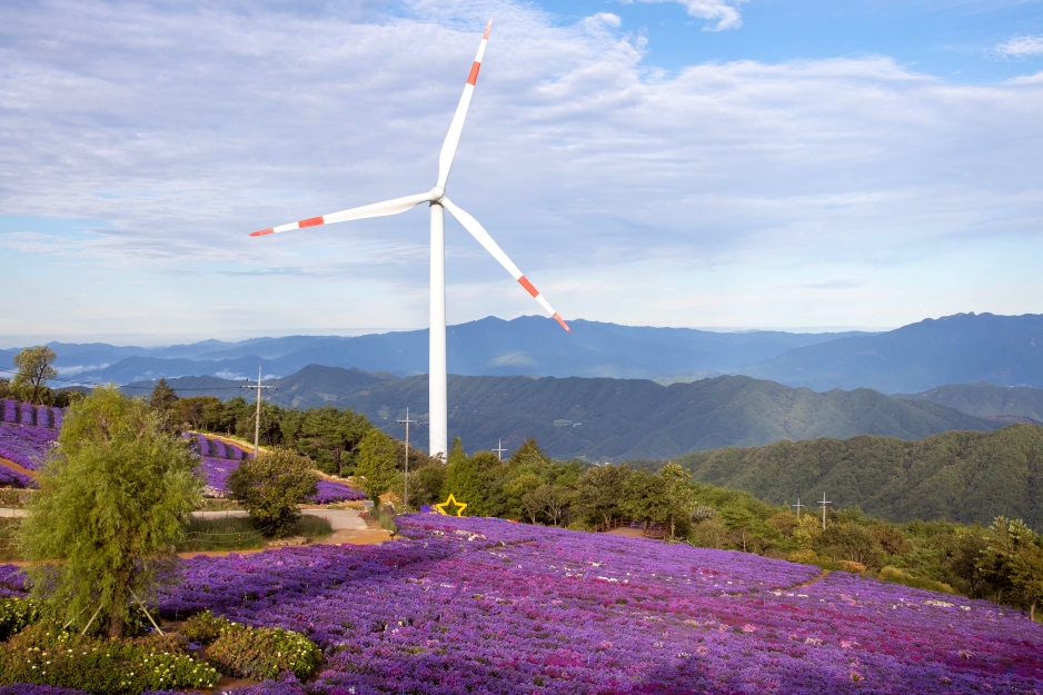 풍력발전 단지로도 알려져 있는 곳이어서 보기만해도 힐링이 되는 풍경을 만날 수 있는 곳이 바로 거창 감악산 별바람언덕, 가을 여행지로 최고인 곳이지요.
