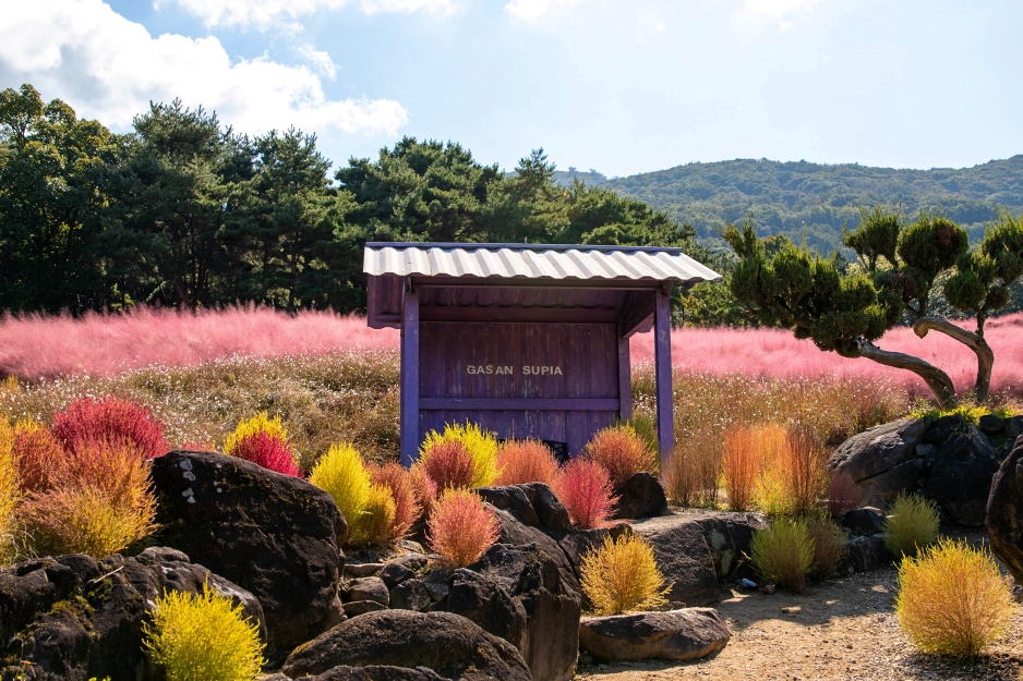 주차장에 내리자마자 아름다운 가을 정원이 펼쳐집니다. 주차장도 넓고, 올해부터는 입장료도 없다고하니 가산수피아로 핑크뮬리 여행을 떠나야 하지 않을까요!
