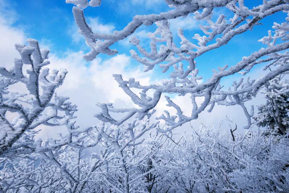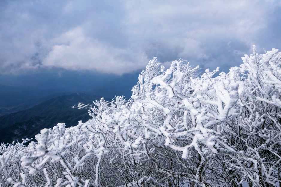 마치 산호초를 보고 있는 것 같지 않으세요? 하늘이 변화무쌍해 언제 어떻게 변할지 모르는 우리나라 최고의 겨울여행지 덕유산 설천봉의 풍경입니다.