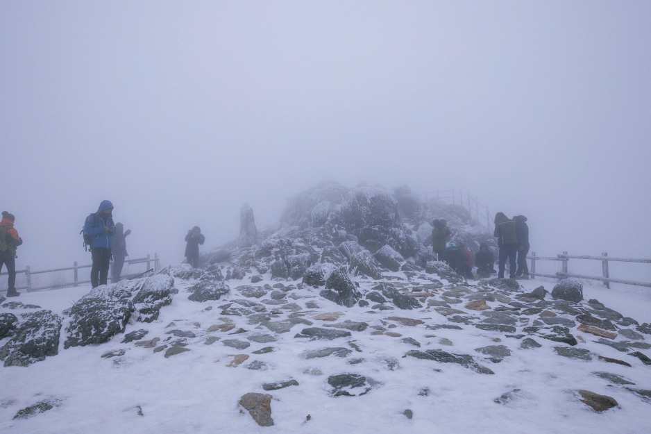 날씨가 급변하는 겨울 산행은 조심해야 합니다. 아이젠 필수고요. 방한복과 장갑, 모자 등도 챙겨오셔야 되겠지요. 하늘이 급변하면서 파란하늘이 보였다가 다시 흐려지기를 반복합니다. 바람도 거세지만 아름다운 설경을 보느라 추운줄 모르겠더라구요.