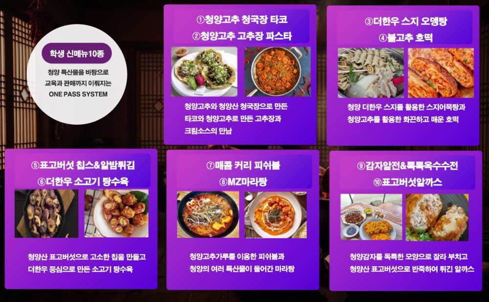 겨울을 녹이는 HOT 청양 FOOD 페스타 청불페의 핵심은 단연 청양 특산물을 활용한 음식 페스티벌입니다. 청양 하면 떠오르는 대표 특산물, 청양고추를 비롯해 지역 농산물로 만든 다양한 메뉴들이 겨울 추위를 단숨에 녹여줍니다. 매콤한 청양고추 퓨전 요리, 따뜻한 국물 음식과 겨울 간식, 대학생들이 직접 참여한 창의적인 푸드 부스, 남녀노소 즐길 수 있는 먹거리 존까지 ‘HOT’한 맛과 따뜻한 온기를 동시에 느낄 수 있는 찐 겨울 축제라고 할 수 있지요.